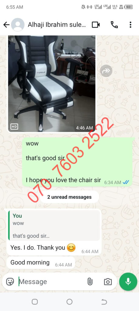 1 black chair delivered to a happy customer in Ogba Lagos state