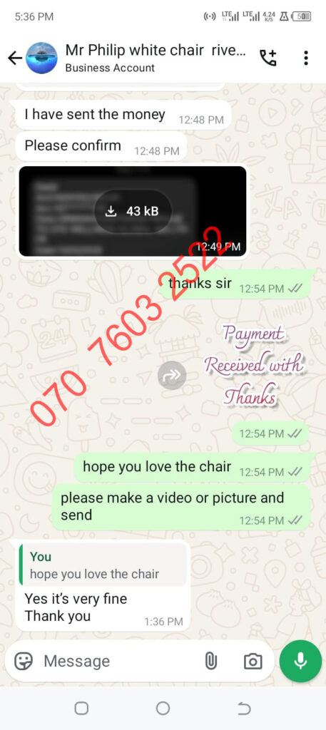 1 white chair delivered to a happy customer in Lekki, lagos state